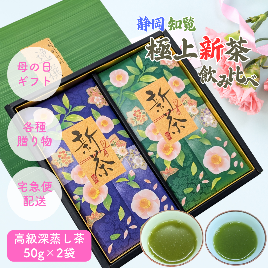 【予約】2026年産極上新茶50g×2袋詰合せ(静岡やぶきた・知覧ゆたかみどり)5月上旬発送開始予定