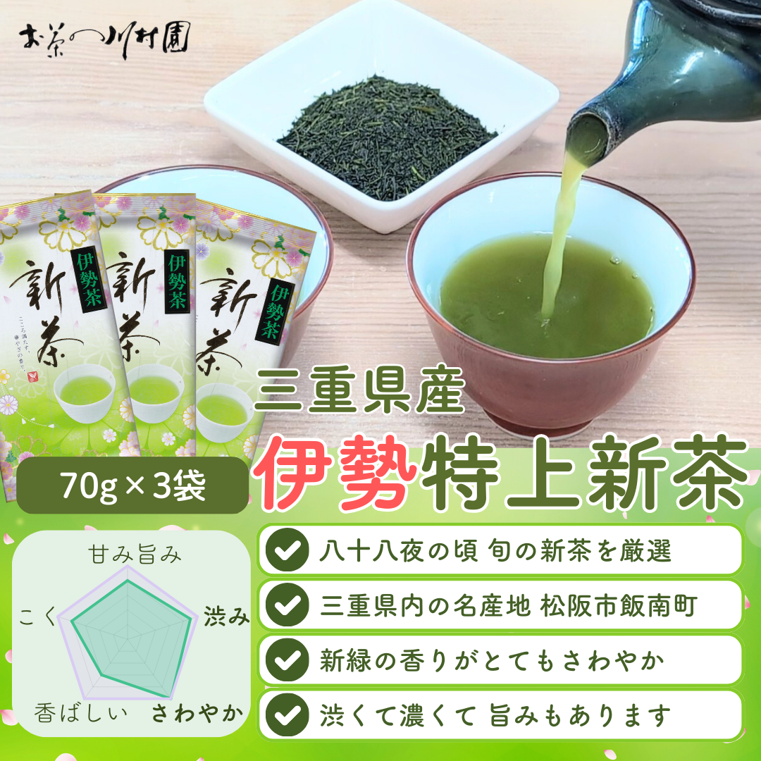 【予約】2026年産新茶 伊勢茶の特上新茶70g×3袋詰めギフト 三重県産深蒸し煎茶 5月上旬発送開始