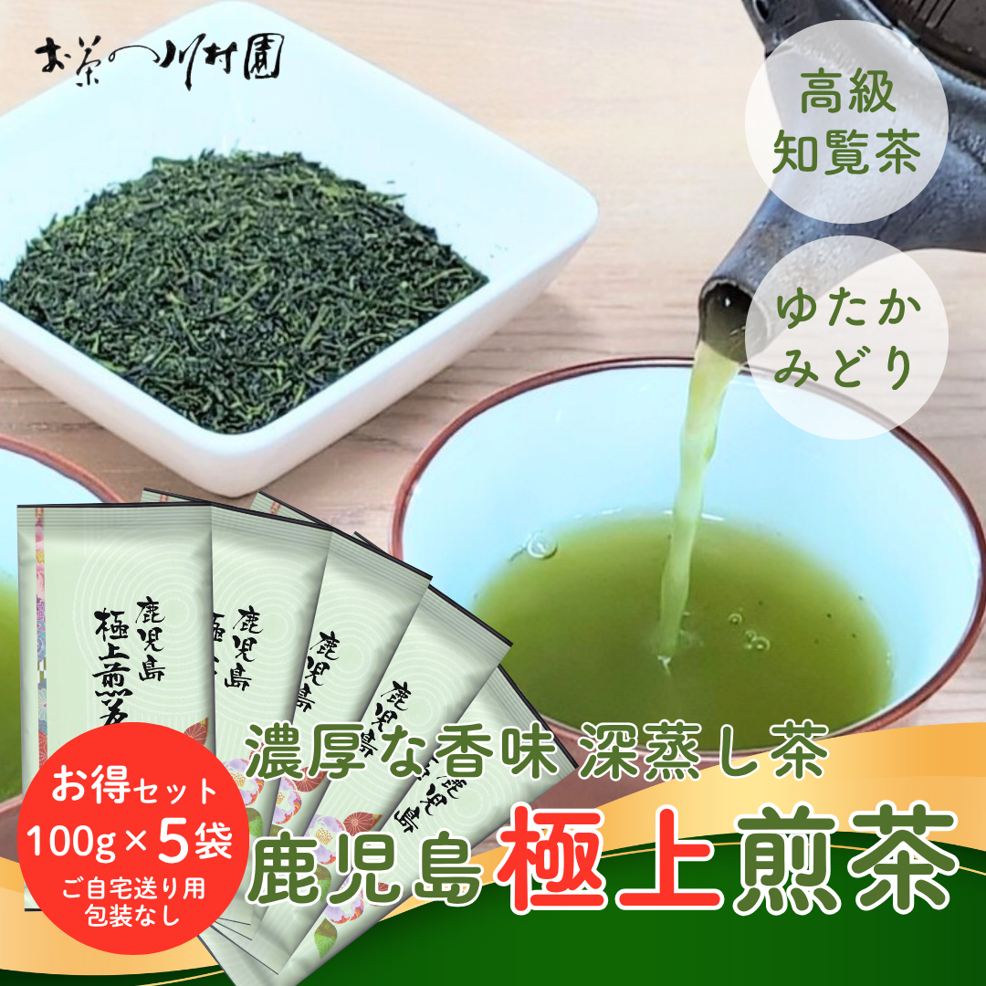 かごしま知覧茶「鹿児島極上煎茶」100g×5袋お値打ちセット 深蒸し煎茶 ゆたかみどり品種 ※包装不可【メール便選択可能】