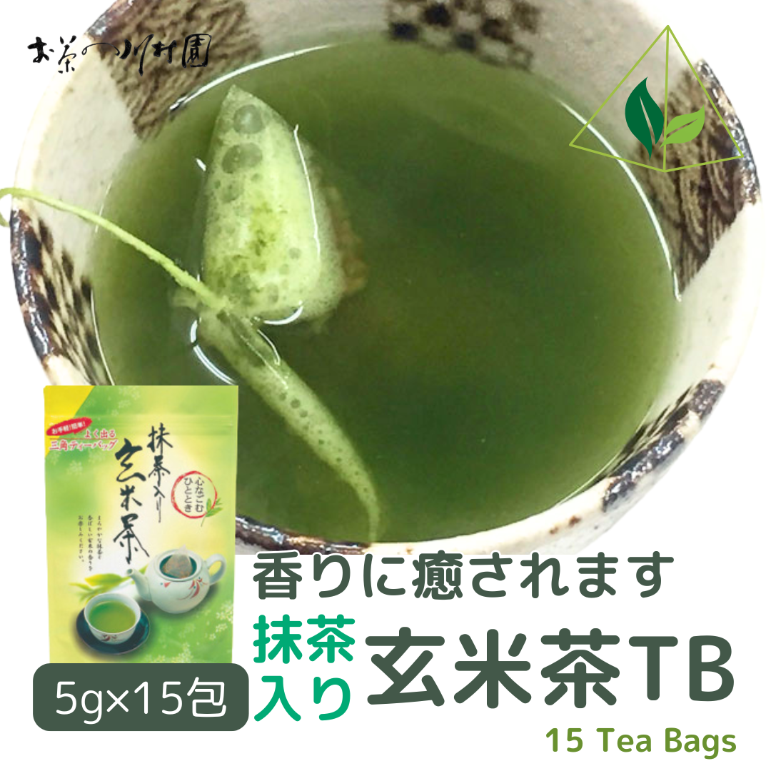【ホット&アイス両用】抹茶入り玄米茶ティーバッグ 5g×15個入【メール便選択可能】