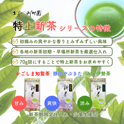 2026年産新茶 特上新茶70g×5袋詰合せ 日本茶3大産地飲み比べギフト 静岡茶 知覧茶 伊勢茶 5月上旬頃より発送予定