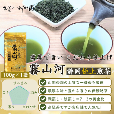 高級静岡茶 こだわり煎茶「霧山河・静岡極上」深蒸し煎茶100g【メール便選択可能】