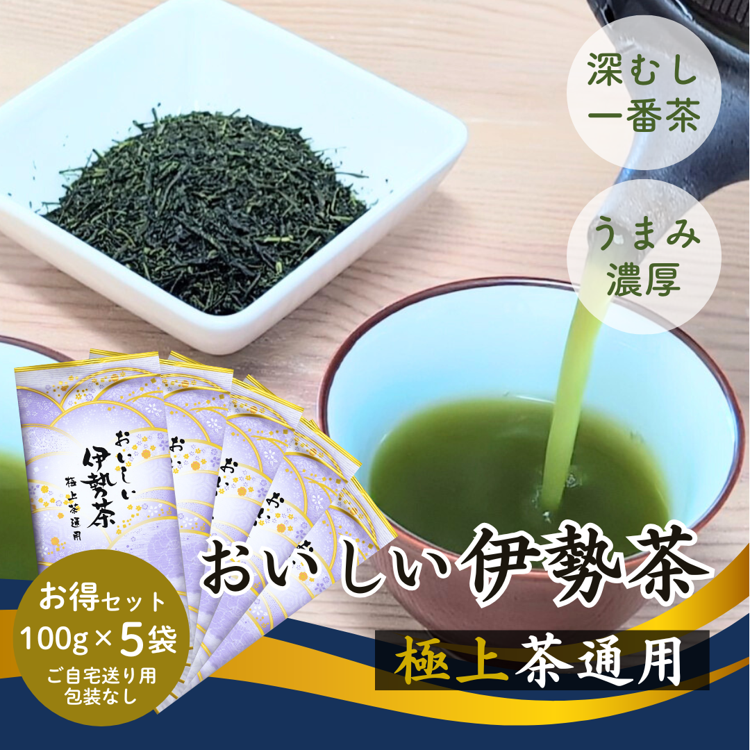 おいしい伊勢茶極上茶通用100g×5袋お徳用セット かぶせ茶・深蒸し煎茶ブレンド (包装不可)【メール便選択可能】