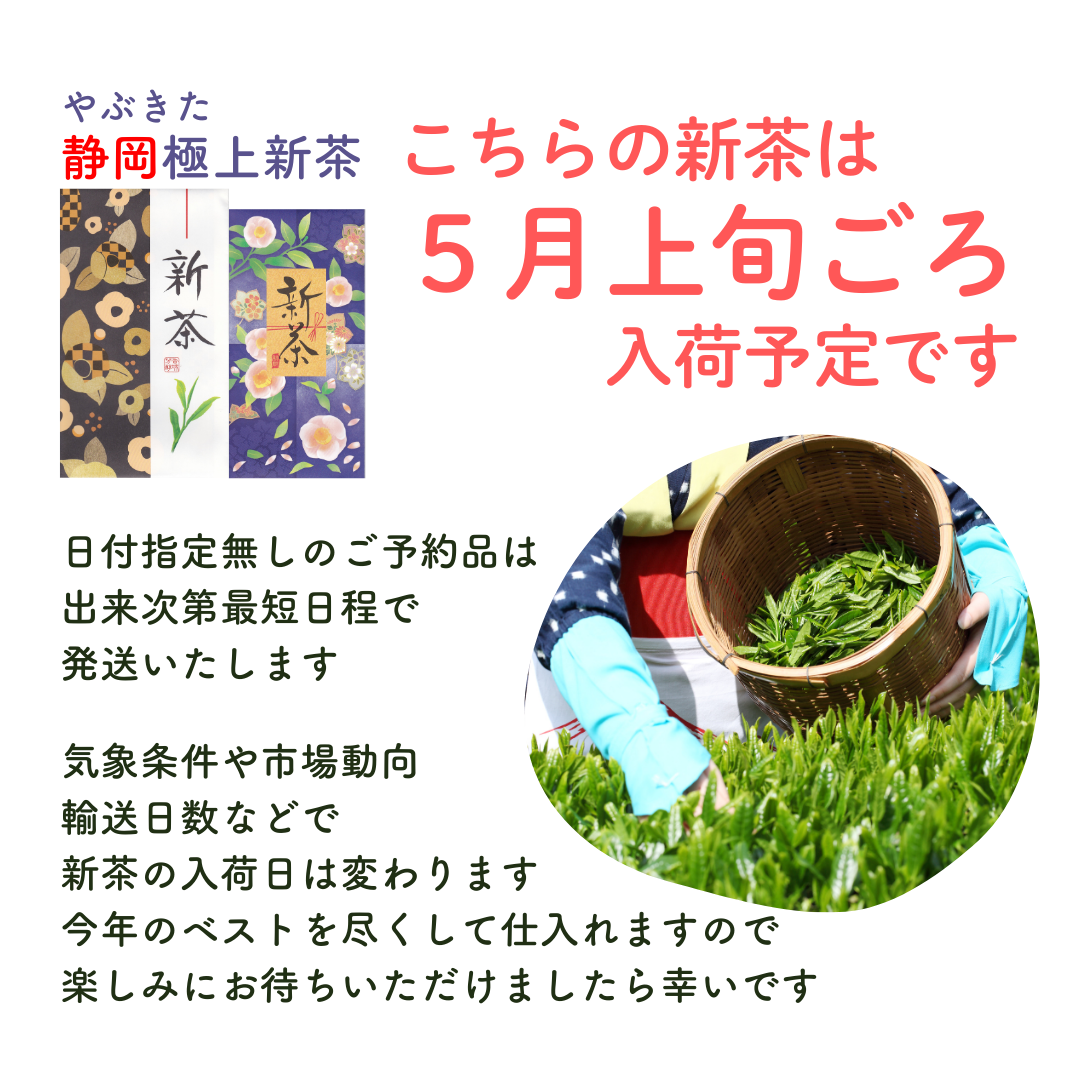 【予約】2026年産静岡極上新茶100g 5月上旬頃より発送予定 静岡県産 深蒸し煎茶 やぶきた品種【メール便OK】 販売価格 1,944円(税込み) 会員価格 1,728円(税込み) 通常価格 2,160円(税込み) 在庫 50 商品コード JANコード ご要望欄(お届け希望日や包装の希望等ありましたらご入力ください) 数量 - + カートに入れる お気に入りリストへ追加する 入荷通知メールを希望する ポストする シェアする カテゴリー 静岡茶 キャンペーン 2026年産新茶| メール便可能商品(1000円以上で送料サービス中) RECOMMENDEDおすすめアイテム 【予約】2026年産新茶 伊勢特上新茶 深蒸し煎茶70g やぶきた品種 5月上旬頃より発送予定【メール便OK】 1,188円(税込み) 【予約】2026年産 静岡特上八十八夜新茶70g やぶきた品種 深蒸し煎茶 5月上旬頃より発送予定【メール便OK】 1,188円(税込み) 【予約】2026年産新茶 鹿児島 知覧特上新茶70g 深蒸し煎茶 5月上旬頃より発送予定【メール便OK】 1,188円(税込み) 【予約】2026年産静岡極上新茶50g 5月上旬頃より発送予定 深蒸し煎茶 やぶきた品種【メール便OK】 1,300円(税込み) 【予約】2026年産かごしま知覧極上新茶50g 4月下旬頃より発送予定 深蒸し煎茶 ゆたかみどり品種【メール便OK】 1,300円(税込み) 【予約】2026年産鹿児島大走り新茶50g 4月下旬頃より発送予定 極上深蒸し煎茶 さえみどり品種【メール便OK】 1,300円(税込み) 【予約】2026年産かごしま知覧極上新茶100g 4月下旬頃より発送予定 深蒸し煎茶 ゆたかみどり品種 【メール便OK】 1,944円(税込み) 【予約】2026年産鹿児島大走り新茶100g 4月下旬頃より発送予定 極上深蒸し煎茶 さえみどり品種【メール便OK】 1,944円(税込み) CAMPAIGNキャンペーン 2026年産新茶 母の日好適!2026年産新茶ギフト メール便可能商品(1000円以上で送料サービス中) CATEGORYカテゴリー 深蒸し煎茶・煎茶 静岡茶 かごしま茶(知覧茶) 伊勢茶(三重県産) 茎茶(かりがね) ほうじ茶・玄米茶 日本茶ティーバッグ 日本茶ギフトセット 静岡茶ギフト かごしま茶(知覧茶)ギフト 伊勢茶ギフト 飲み比べギフト べにふうき粉末緑茶 抹茶(予約不可) 麦茶・健康茶など 茶器・小物など CALENDARカレンダー 2026年02月 日 月 火 水 木 金 土 1 2 3 4 5 6 7 8 9 10 11 12 13 14 15 16 17 18 19 20 21 22 23 24 25 26 27 28 2026年03月 日 月 火 水 木 金 土 1 2 3 4 5 6 7 8 9 10 11 12 13 14 15 16 17 18 19 20 21 22 23 24 25 26 27 28 29 30 31 発送休業日