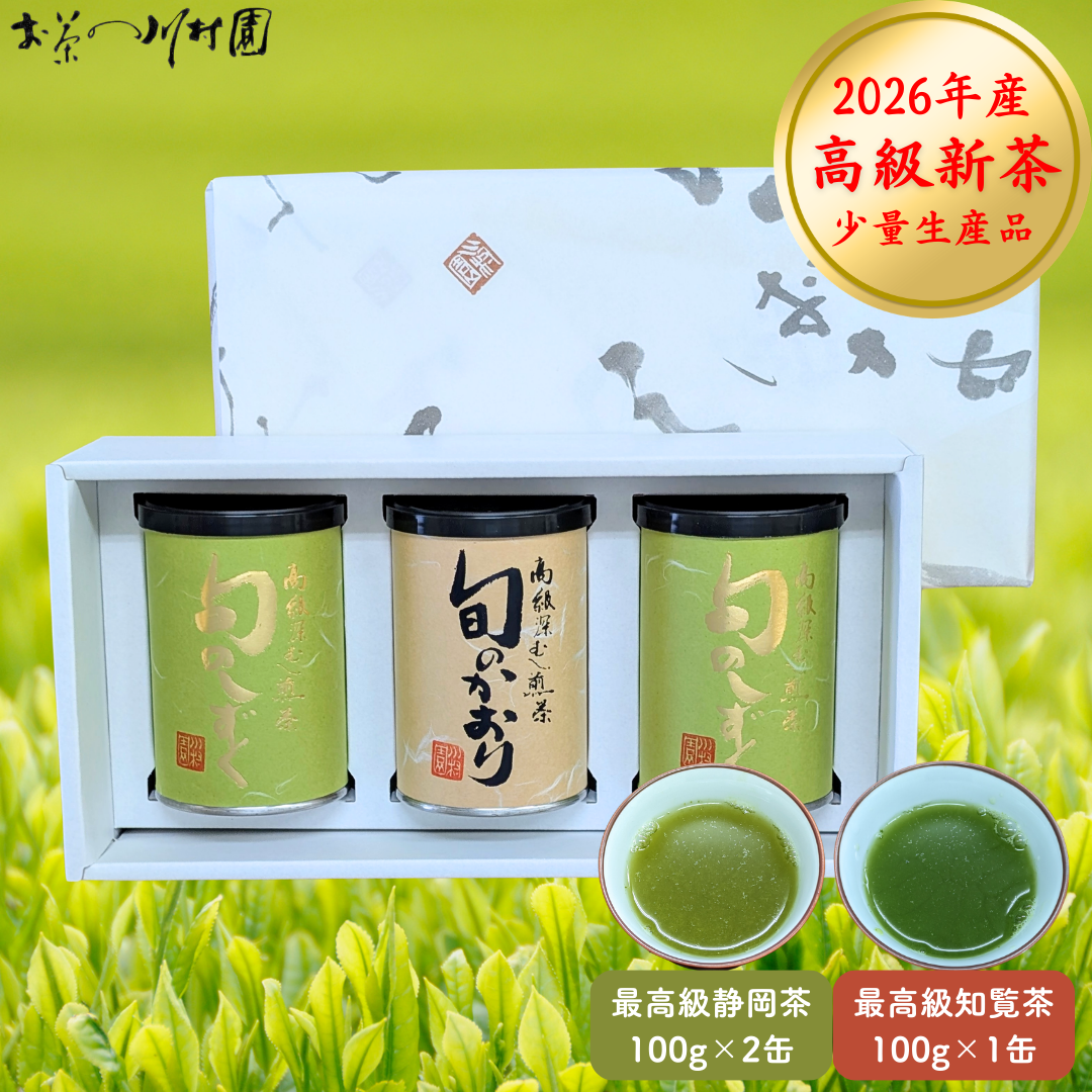 【予約】最高級新茶 深蒸し煎茶3缶詰合せギフト (静岡茶200g・知覧茶100g)5月上旬発送開始