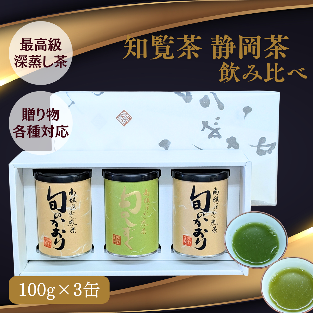 【限定品】最高級 深蒸し煎茶3缶詰合せギフト (静岡茶「旬のしずく」100g×1・知覧茶「旬のかおり」100g×2)